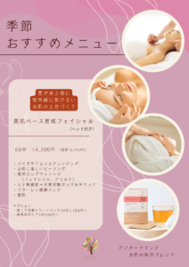 2月のアフタードリンク 2023 2/07 サロンについて 2023年2月7日 2023年2月7日 マヌカキャラメルのふわふわミルクティ キャラメル香る、甘くクリーミーなホットミルクティー 是非、アフタードリンクにお選びください サロンについて よかったらシェアしてね! URL Copied! URL Copied! 2月講座プログラム 3月講座プログラム 関連記事 4月のシーズンアロマ 2026年3月25日 4月のアフタードリンク 2026年3月25日 4月のお休み 2026年3月25日 1月~3月キャンペーン 2026年2月13日 【季節限定・3月末まで】温感リラックスコース 2026年2月13日 【季節限定・3月末まで】冬の乾燥を当たり前にしないお肌育成 2026年2月13日 3月のシーズンアロマ 2026年2月13日 3月のお休み 2026年2月13日